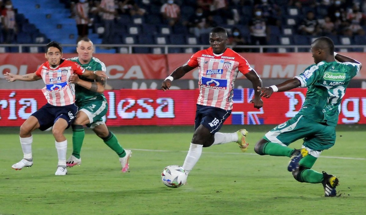 El primer tiempo en Barranquilla fue dinámico y con opciones de gol tanto para Junior como para La Equidad. Los locales, con la obligación de ganar para asegurar su clasificación sorprendieron en los primeros minutos para abrir el marcador, mientras que los capitalinos reaccionaron sobre el final.