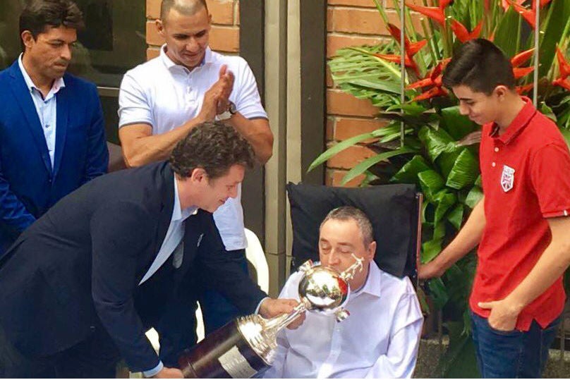 El momento más emotivo del acto, realizado en la urbanización donde vive al sur de Medellín el homenajeado, llegó cuando Montoya, animado por el propio presidente de la Conmebol, beso la réplica de un trofeo que pidió hace dos meses durante la presentación en Bogotá de la primera escuela para técnicos y entrenadores de fútbol en Colombia.