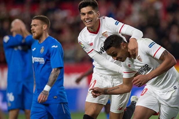 El delantero colombiano, que había revolucionado el juego de los suyos, tuvo premio y marcó el 1-0 para el Sevilla a los 72 minutos, lo que obligó a los visitantes a salir de su área para acercarse a la meta de Sergio Rico.