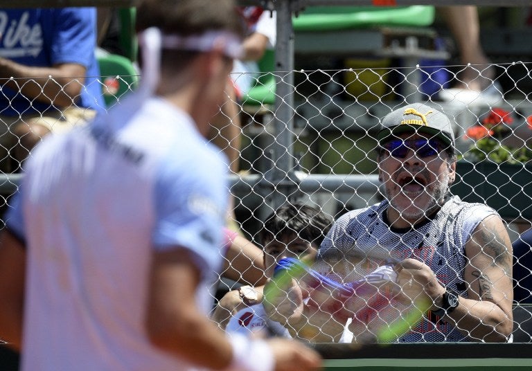 Tal como sucedió en otros encuentros, incluida la final del año pasado en Zagreb, Croacia, donde Argentina se consagró campeón, Maradona alentó a los tenistas argentinos desde una de las tribunas cabeceras del estadio montado especialmente para esta serie.