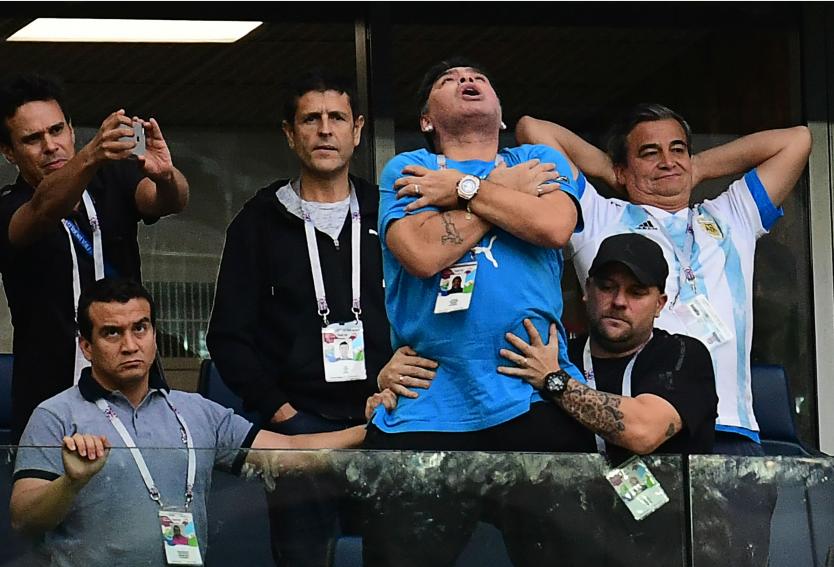 Maradona en el estadio de San Petersburgo (Rusia). Crédito: AFP