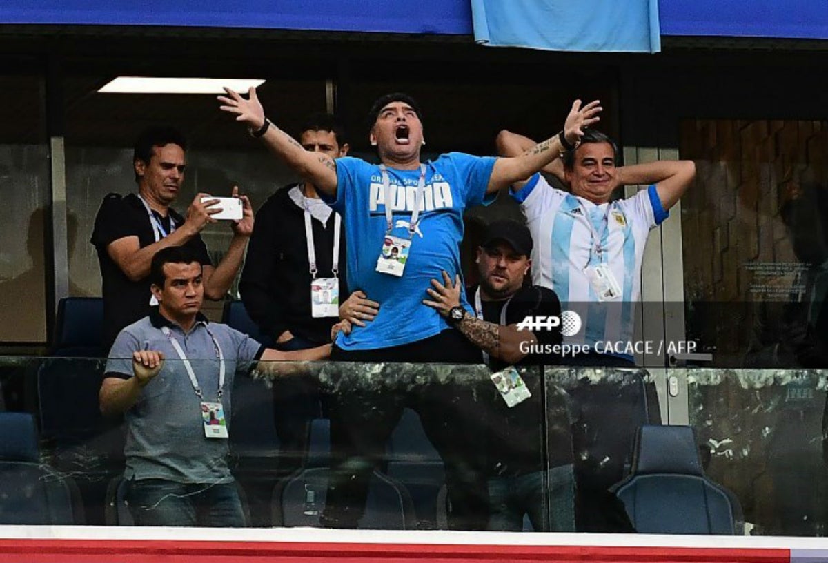 El argentino fue protagonista del encuentro ante Nigeria porque actuaba de forma extraña, estaba enloquecido a tal punto que se subió en una parte del palco y tuvo que ser agarrado por uno de sus acompañantes para que no fuera a caer. Hasta mostró los dedos del medio para hacer evidente su malestar.