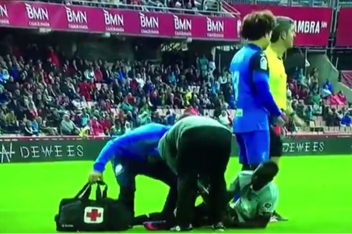 Marlos Moreno se lesionó al resbalar en la cancha cuando transcurría el segundo tiempo ante Granada; fue sustituido por Ryan Babel.