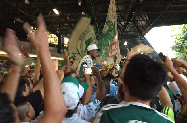 El goleador colombiano fue inmediatamente vestido con una camiseta y una gorra de la Mancha Verde, la principal barra del Palmeiras y que tiene una de las escuelas de samba que participará en el carnaval paulista, y llevado en hombros hasta el coche en el que se trasladó a un hotel de Sao Paulo.