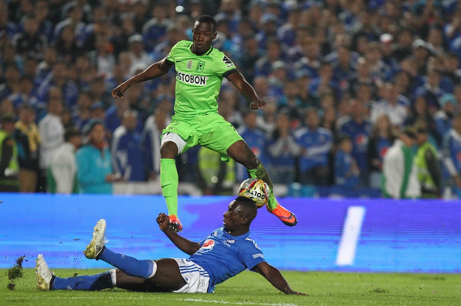 Millonarios derrotó 2-1 al poderoso Atlético Nacional y dio el primer golpe en el inicio de los cuartos de final del torneo Clausura-2016 de Colombia, que se disputó este fin de semana.