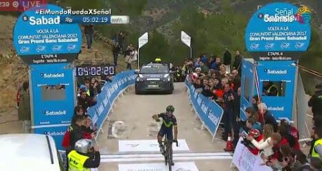 El colombiano Nairo Quintana (Movistar) ganó la etapa reina de la Vuelta a Valencia al imponerse en solitario en la cima del Mas de la Costa, logrando el maillot amarillo de líder en la víspera de la última etapa.