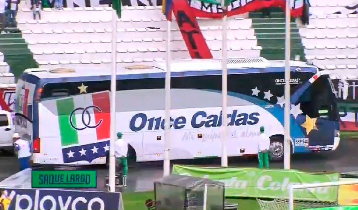 Arribo del Once Caldas al estadio Palogrande de Manizales para la final ante Atlético Nacional por Copa Águila Crédito: Imagen tomada de Win Sports