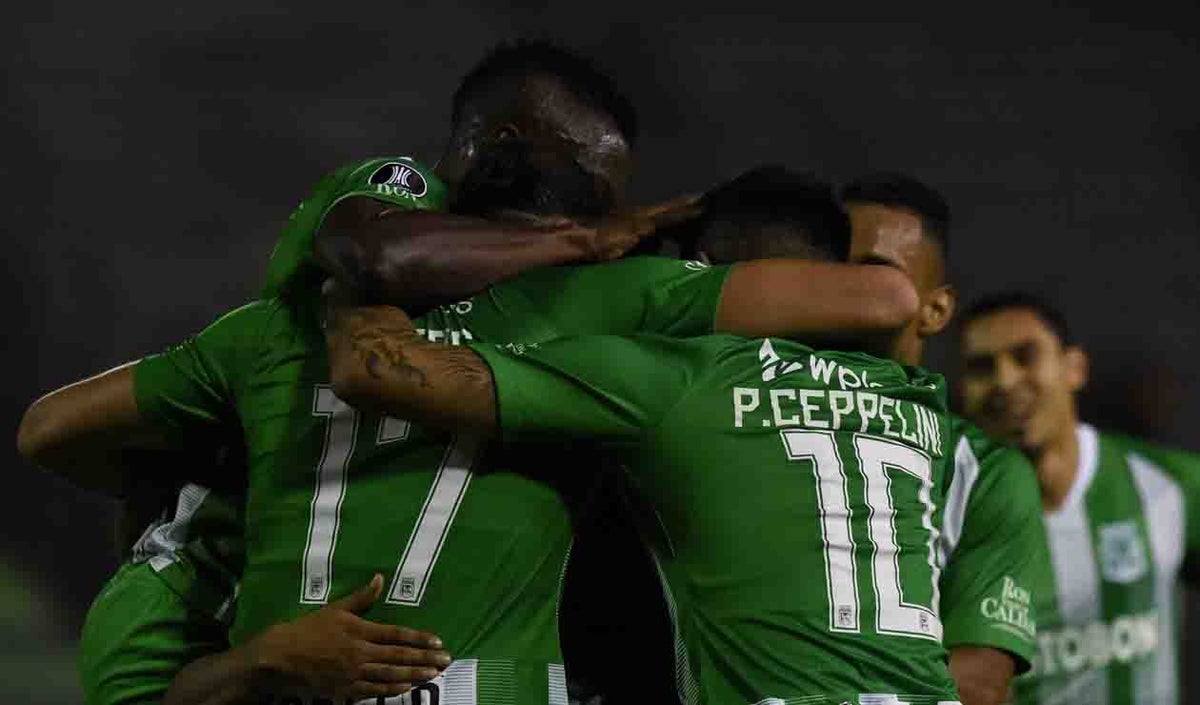 Atlético Nacional celebrando su victoria por Copa Libertadores La Guaira. Crédito: AFP