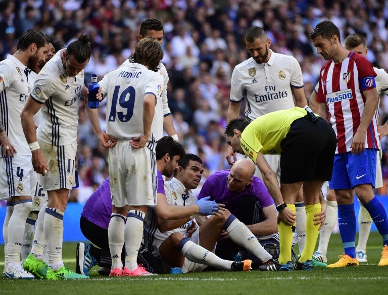 El portugués Pepe, defensa del Real Madrid que se tuvo que retirar lesionado del derbi ante el Atlético de Madrid sufre una fractura en la séptima y la octava costilla, según el parte médico emitido por el club blanco.