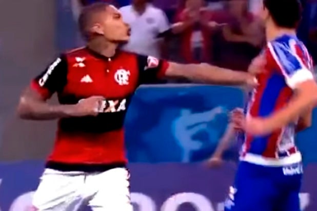 En el momento en que iban a disputar un balón, Paolo Guerrero (Flamengo) y Lucas Fonseca (Bahía) protagonizaron una disputa que terminó de la forma más patética.