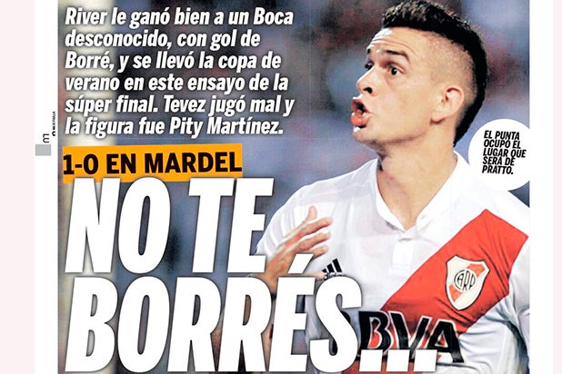 Para Boca, vigente líder de la Superliga, esta derrota marcó un verano sin alegrías tras las derrotas ante Godoy Cruz (2-3) y por penaltis frente a Aldosivi (1-3), después de empatar en dos durante el tiempo reglamentario. River, en tanto, consiguió su primera alegría luego de una pretemporada realizada en la ciudad estadounidense de Miami, que incluyó un único amistoso que terminó con derrota ante el colombiano Independiente Santa Fe (1-2).