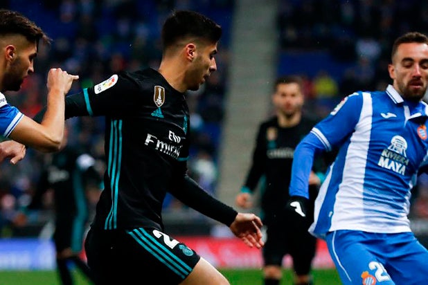 El Real Madrid (3º) cayó en el descuento 1-0 en el campo del Espanyol (13º) en el primer partido de la 26ª jornada de la Liga española, que lidera el FC Barcelona.