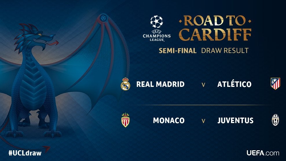 El sorteo realizado en la sede de la UEFA en Nyon (Suiza) propone dos clubes de los grandes de Europa, Real Madrid y Juventus, un habitual, el Atlético Madrid, y un invitado sorpresa, Mónaco.
