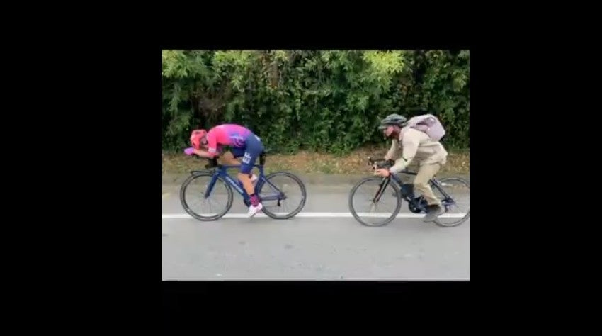 Un grandioso gesto tuvo este miércoles 10 de junio el ciclista colombiano Rigoberto Urán con Iván Darío Jiménez, el campesino que le "chupó rueda" al corredor profesional hace algunos días por las vías del departamento de Antioquia, mientras realizaba un entrenamiento de contrarreloj.