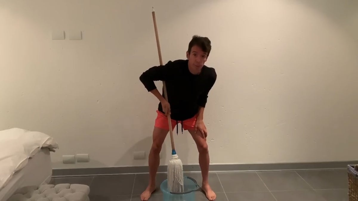 "Mijitos, aquí les enseño unos ejercicios que todos pueden hacer desde casa", aseguró el oriundo de Urrao, en un gracioso video en el que se lo ve trabajando desde casa con un trapero y un valde en el que enseña las bases de una buena rutina para trapear el piso, desde lo más básico hasta las partes más "complicadas", en donde asegura que se debe mantener bien la respiración, la rectitud de la espalda y algunos otros detalles.