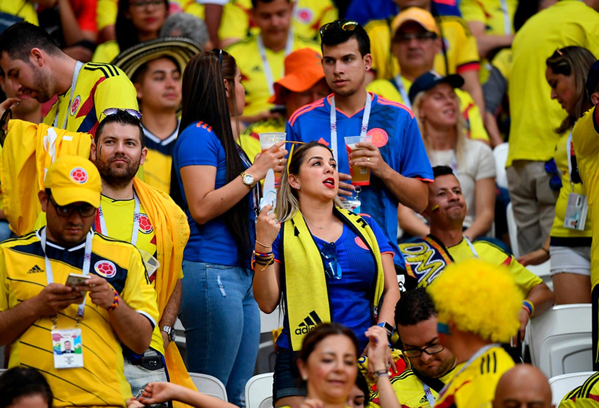 Hinchas colombianos en el Estadio Kazán Arena de Rusia