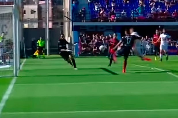 Sebastián Torrico, portero argentino de San Lorenzo, protagonizó una de las atajadas del año. Cuando se disputaban 30 minutos de juego, sacó una acción clara para el visitante, que significaría el 1-1.