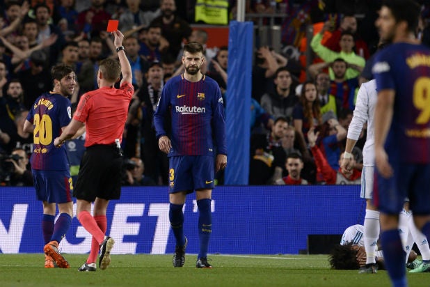 Sergi Roberto fue expulsado el pasado domingo con roja directa en el descuento de la primera parte (45+2) del clásico entre el Real Madrid y el Barça por dar un manotazo a Marcelo en la cara.