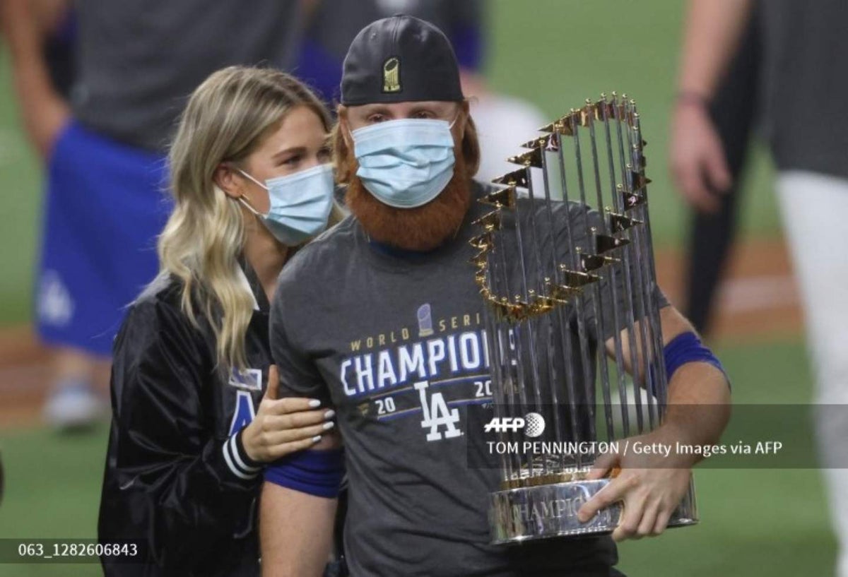 Justin Turner, figura de los Dodgers de Los Ángeles, tuvo que abandonar el juego del martes de la Serie Mundial por dar positivo en una prueba de coronavirus, pero posteriormente regresó a la cancha para festejar el título junto a sus compañeros.
