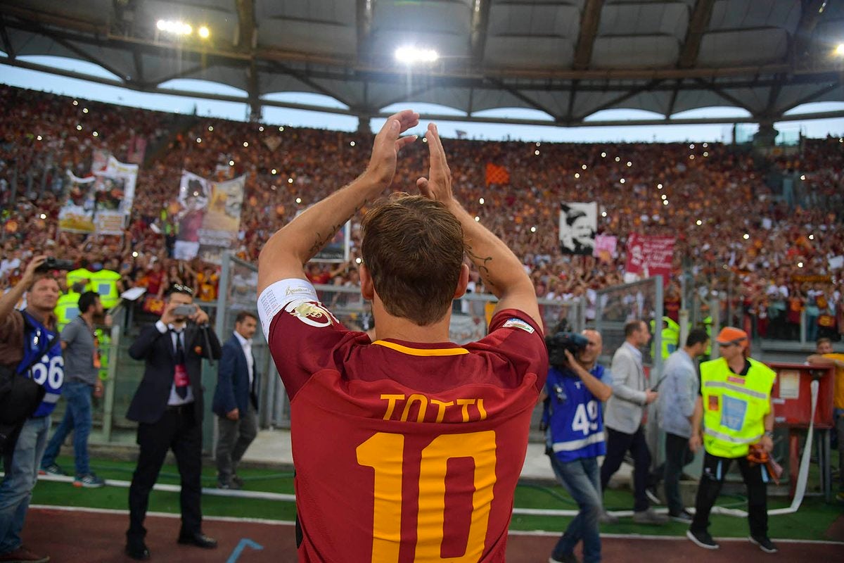 Totti, de 40 años, jugó el encuentro número 786 de una carrera de 25 años en la que marcó 307 goles, todos completamente dedicados al equipo de su ciudad, algo que le reconoció esta tarde su hinchada en el acto organizado al finalizar el partido.