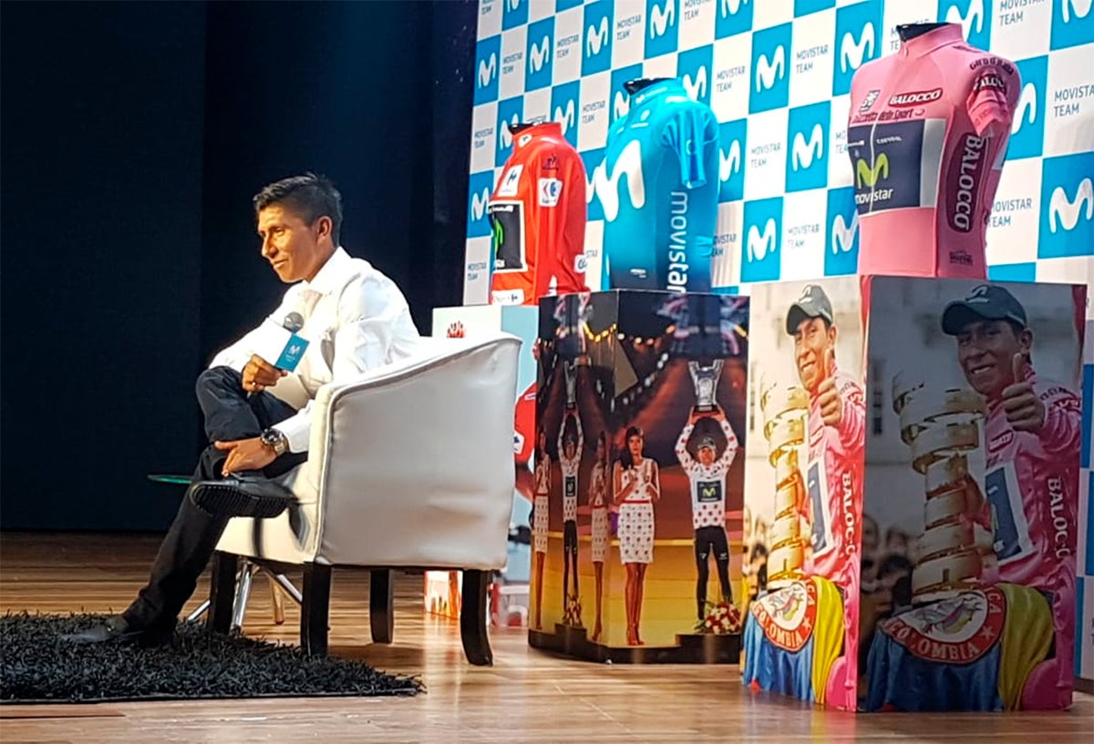 Nairo Quintana, ciclista colombiano al servicio de Movistar Team, en rueda de prensa en Bogotá