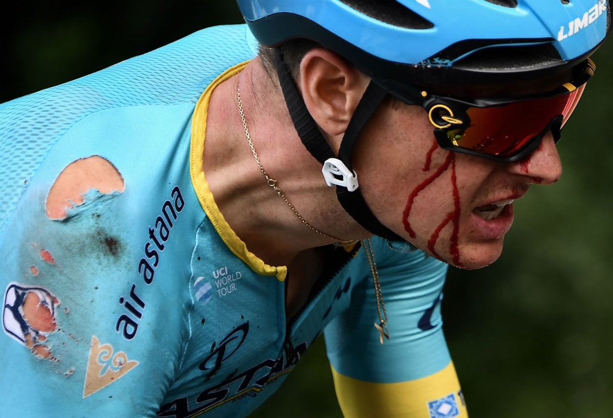 Si bien terminó recuperando terreno y no cedio tiempo con el grupo de principales candidatos al título, el ciclista danés se llevó un susto cuando nada hacía prever alguno sobresalto. Terminó sangrando y arropado por su equipo en el tramo definitivo de la jornada.