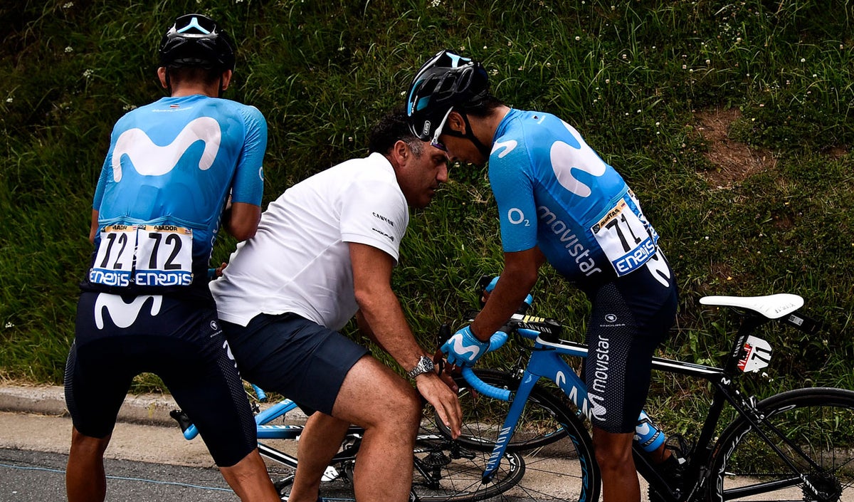 Nairo Quintana vivió un momento de tensión en la décimo octava etapa del Tour de Francia, luego de una caída masiva que implicó al corredor del Movistar Team.