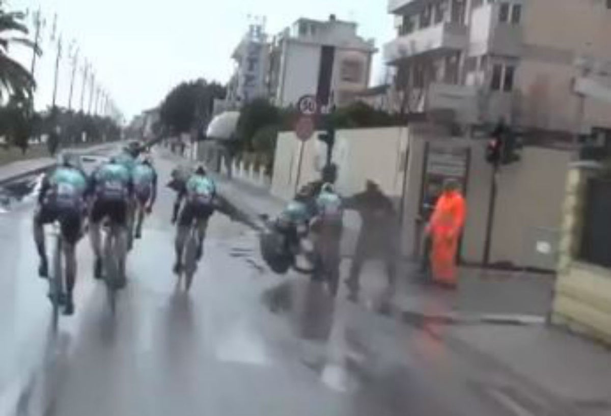 Ciclista arrolló a un peatón en plena contrarreloj de Tirreno Adriático