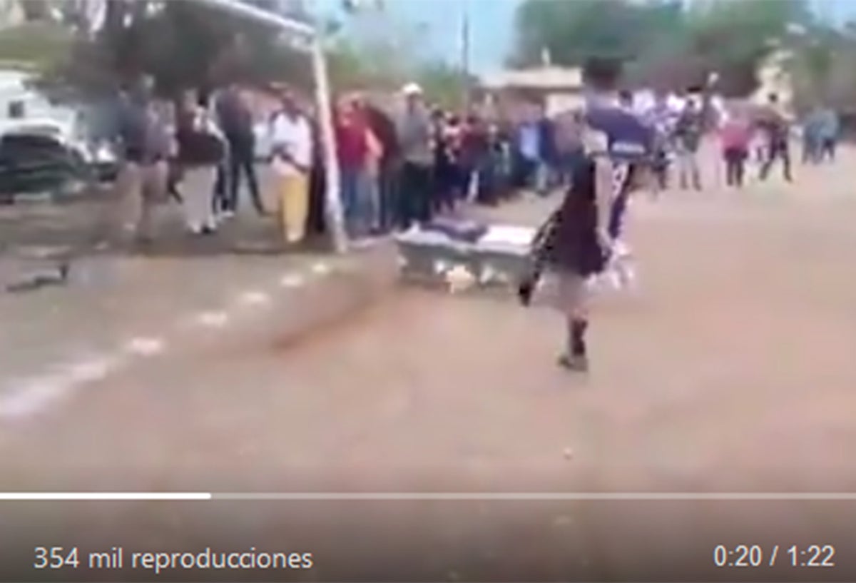 En las imágenes se aprecia cómo los futbolistas simulan un compromiso y uno de ellos asiste a su delantero Acuña, que desde el ataúd anotó. También se aprecia una gran conglomeración de gente y se puede escuchar el llanto de varios de los presentes.