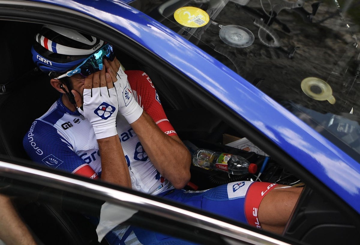 Pinot, en medio de un conmovedor llanto, se paró tras una hora de carrera en esta etapa entre Saint-Jean-de-Maurienne y Tignes, la segunda de la trilogía alpina.