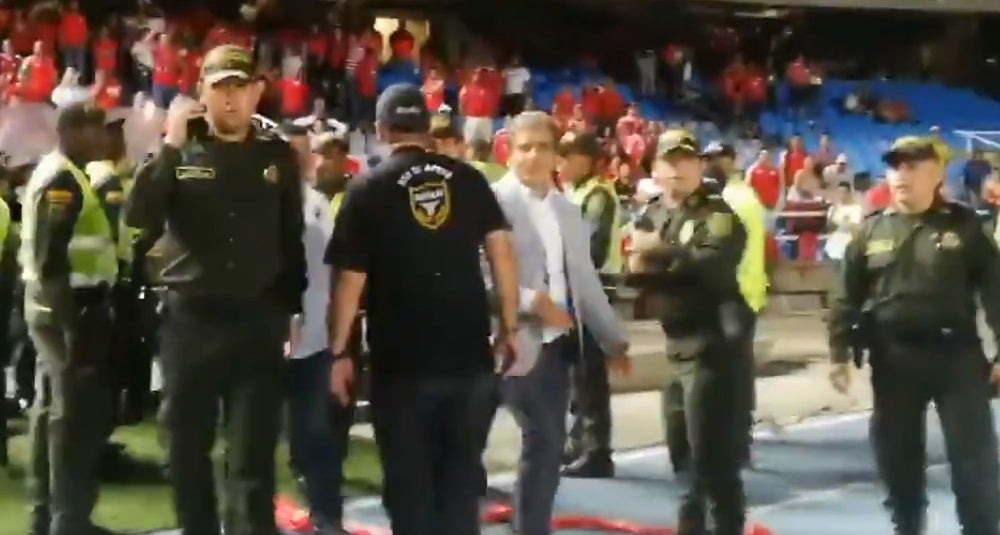 Las autoridades apartaron al plantel de Millonarios de la entrada del túnel que dirige hacia los camerinos mientras se calmaba la ira de los fanáticos; no obstante, voló una botella llena de agua desde la tribuna y por poco impacta a Jorge Luis Pinto que pudo haber sido herido. Afortunadamente, el policía ‘se disfrazó de arquero’ y se estiró para atajar el objeto contundente que pudo crear estragos.
