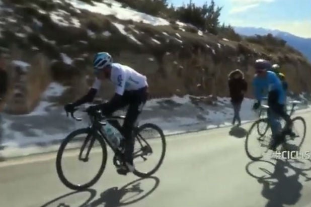 Egan Bernal y Nairo Quintana durante la etapa 4 de la Vuelta a Cataluña / Foto de la transmisión