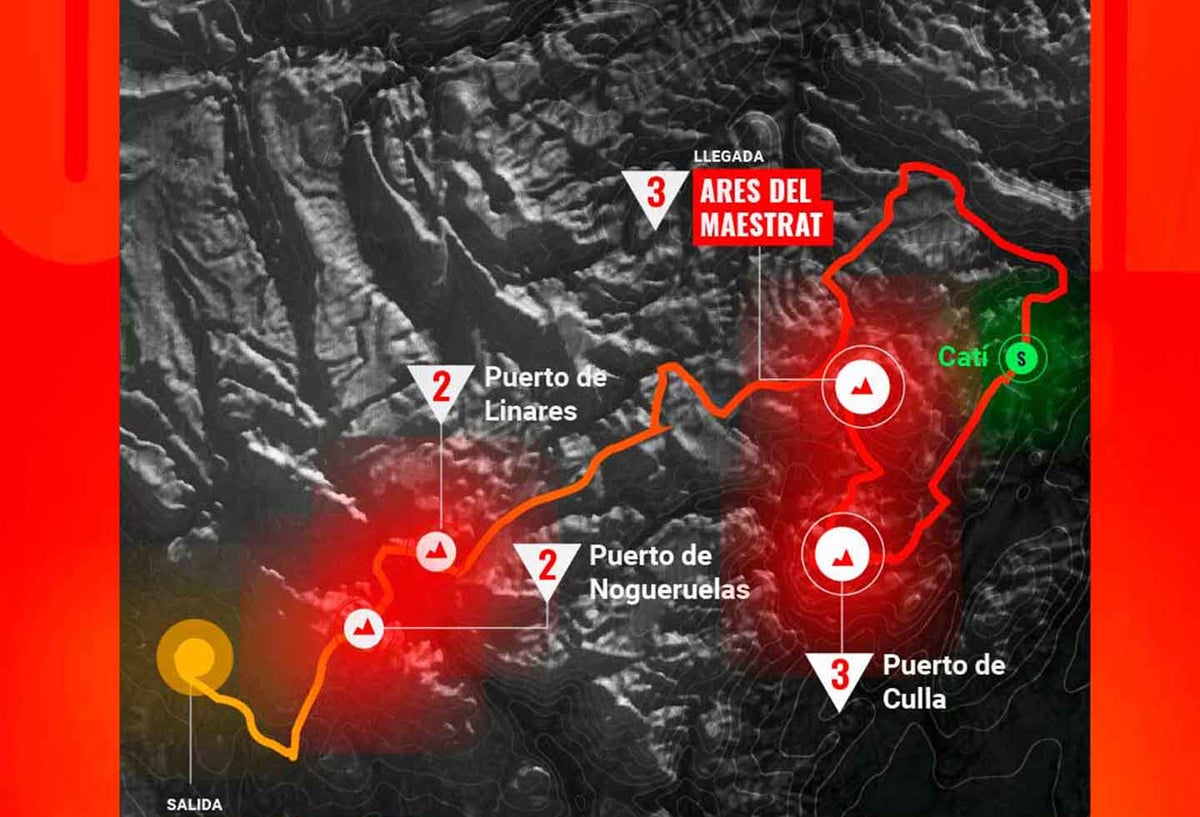 Ninguno de los cuatro puertos de la jornada destacan por contar con rampas muy exigentes, aunque la presencia del puerto de Culla, a solo 25,5 kilómetros del final, unido a la ascensión final de 7,9 kilómetros, puede convertirse en una buena opción para intentar hacer saltar la sorpresa.