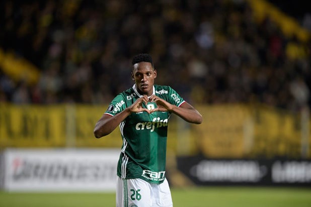 Yerry Mina, que juega desde 2016 en el Palmeiras, podría ocupar la vacante de Mascherano (33 años), si se concreta su salida al Hebei Fortune chino.