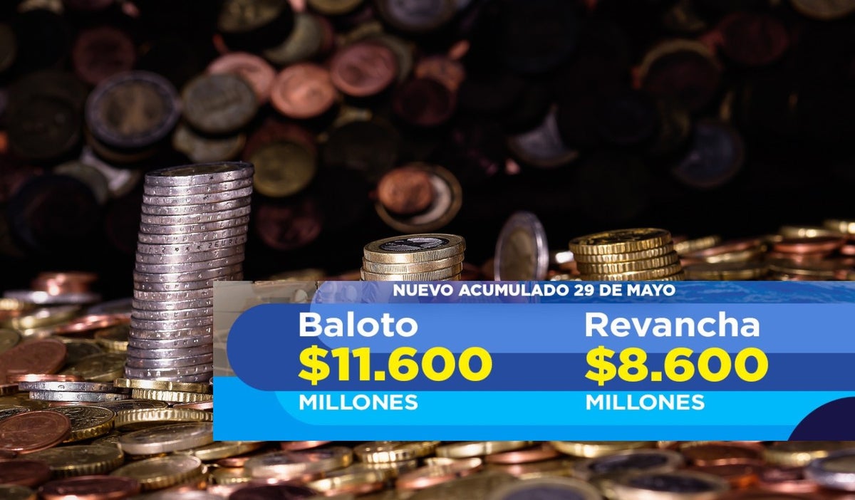 Para este miércoles 29 de mayo, el acumulado del Baloto está en 11.600 millones de pesos. Y también se debe tener en cuenta el sorteo Revancha, que se acumula y en este momento suma 8.600 millones de pesos.