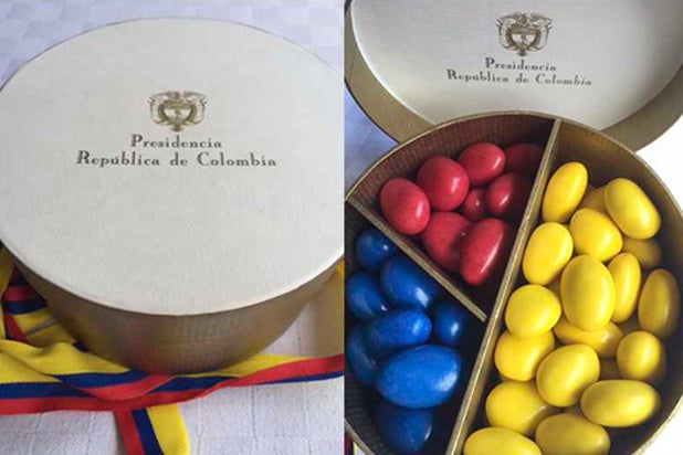 A diferencia del millonario contrato por más de $600 millones para la compra de cortinasque fue adjudicado a dedo, acá si hubo licitación y ganó la empresa que presentó la oferta más baja, pero cumpliendo estas condiciones: “Caja de cartón redonda con tres divisiones (diámetro 12 cm x 6 cm de alto) forrada con papel regalo importado color dorado, material papel kraft, con peso de 65 gro La tapa de la caja deberá tener tanto al interior como al exterior papel neutro, libre de acidez y de bajo impacto ambiental y acabado en lienzo color blanco de 120 gr 2xO de alta receptividad a tintas litográficas escudo de Colombia de 2 cm color sepia y texto gris oscuro letra Mona Lisa a 18 puntos y la frase Presidencia de la República de Colombia; con almendras de colores de la bandera de Colombia”.