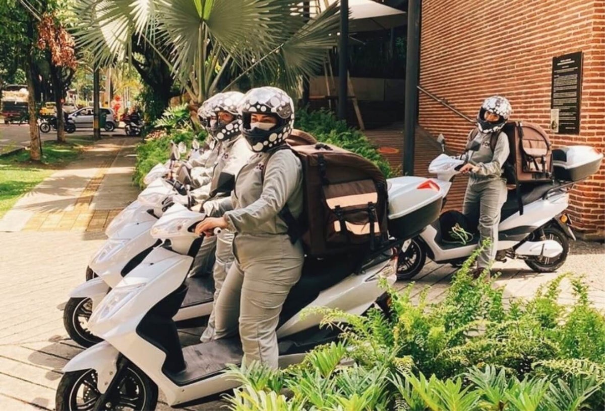 La cadena de restaurantes Crepes & Waffles lanzó esta semana su flota de domicilios, compuesta por mujeres (como el resto de sus empleadas). Las motos, además, son eléctricas.