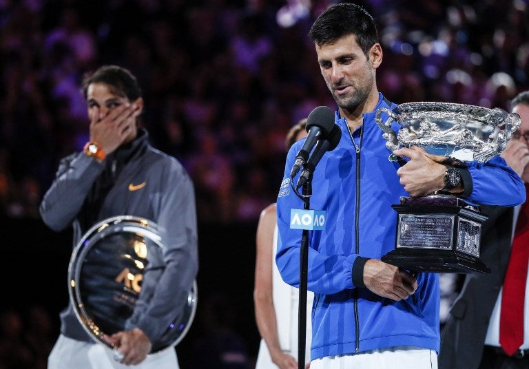 Djokovic y Nadal en la ceremonia de premiación del Abierto de Australia