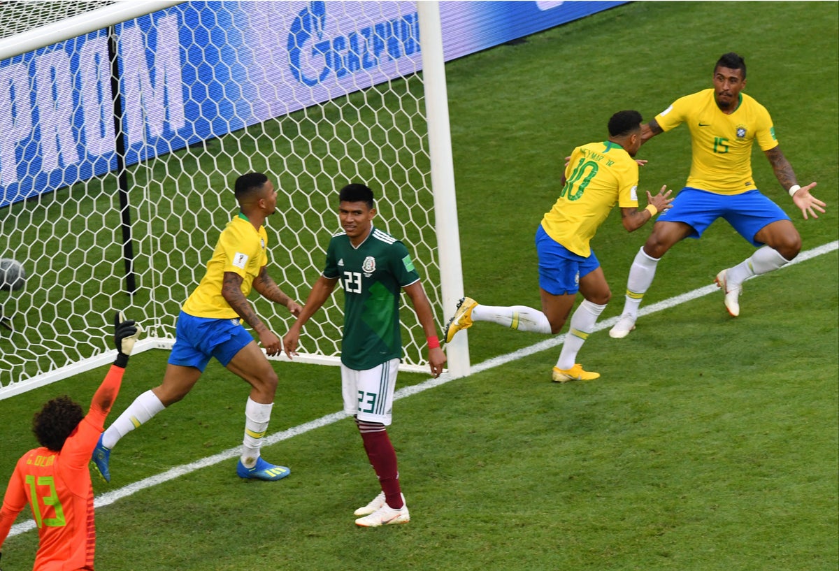 Jugadores de Brasil tras anotar gol ante México. Crédito: AFP