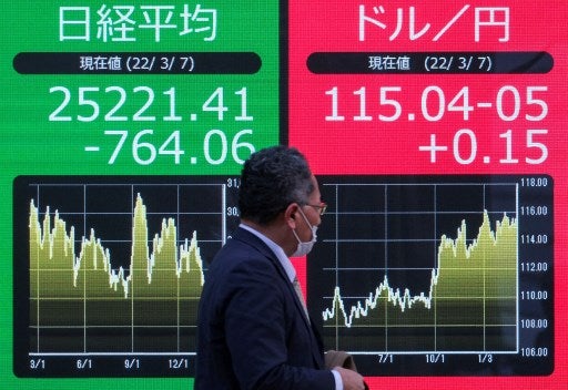 Este lunes, las bolsas asiáticas ya registraron fuertes pérdidas por el efecto del conflicto en Ucrania. Tokio perdió 2,94%, y cayó a su menor nivel desde noviembre de 2020, mientras Shanghái perdió 2,17%. Las pérdidas en Hong Kong fueron aún peores: -3,87%.