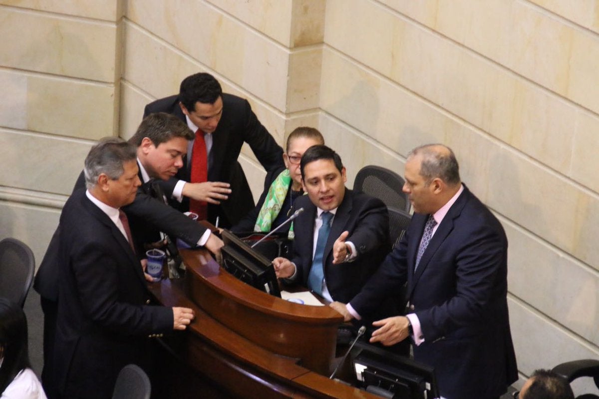 El ministro de Hacienda, Mauricio Cárdenas, aprovechó la plenaria para defender el aumento del IVA del 16% al 19%.