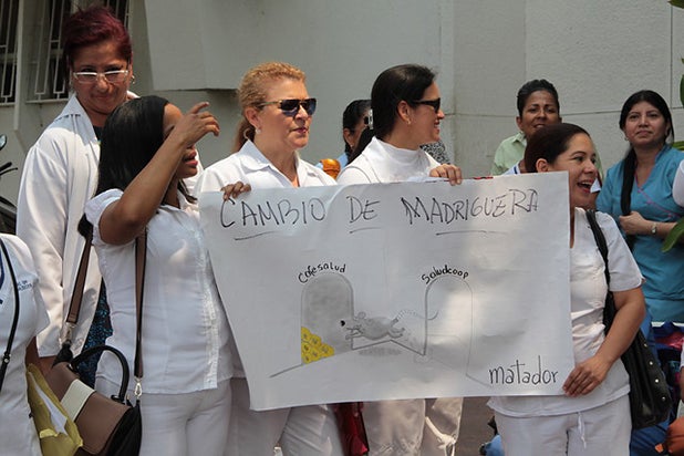 Trabajadores de la EPS Cafesalud en Barranquilla realizaron un plantón el 28 de marzo de 2016 / Foto de Colprensa