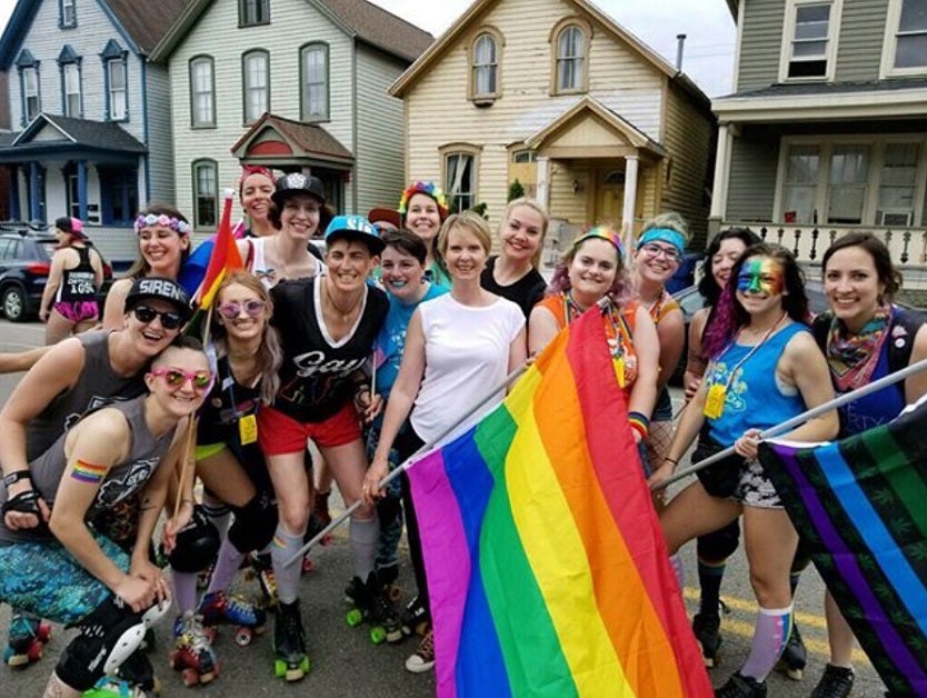 La actriz y candidata a la gobernación de Nueva York, Cynthia Nixon, estuvo presente en esta celebración en apoyo a la comunidad y en especial a su hijo.