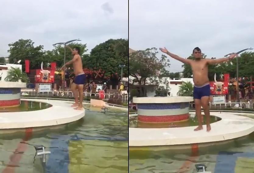 Después del Festival de la Leyenda Vallenata, celebrado en Valledupar, se hizo viral un video en el que un joven aparece bailando en calzoncillos dentro de la fuente luminosa mientras sus amigos lo animan.