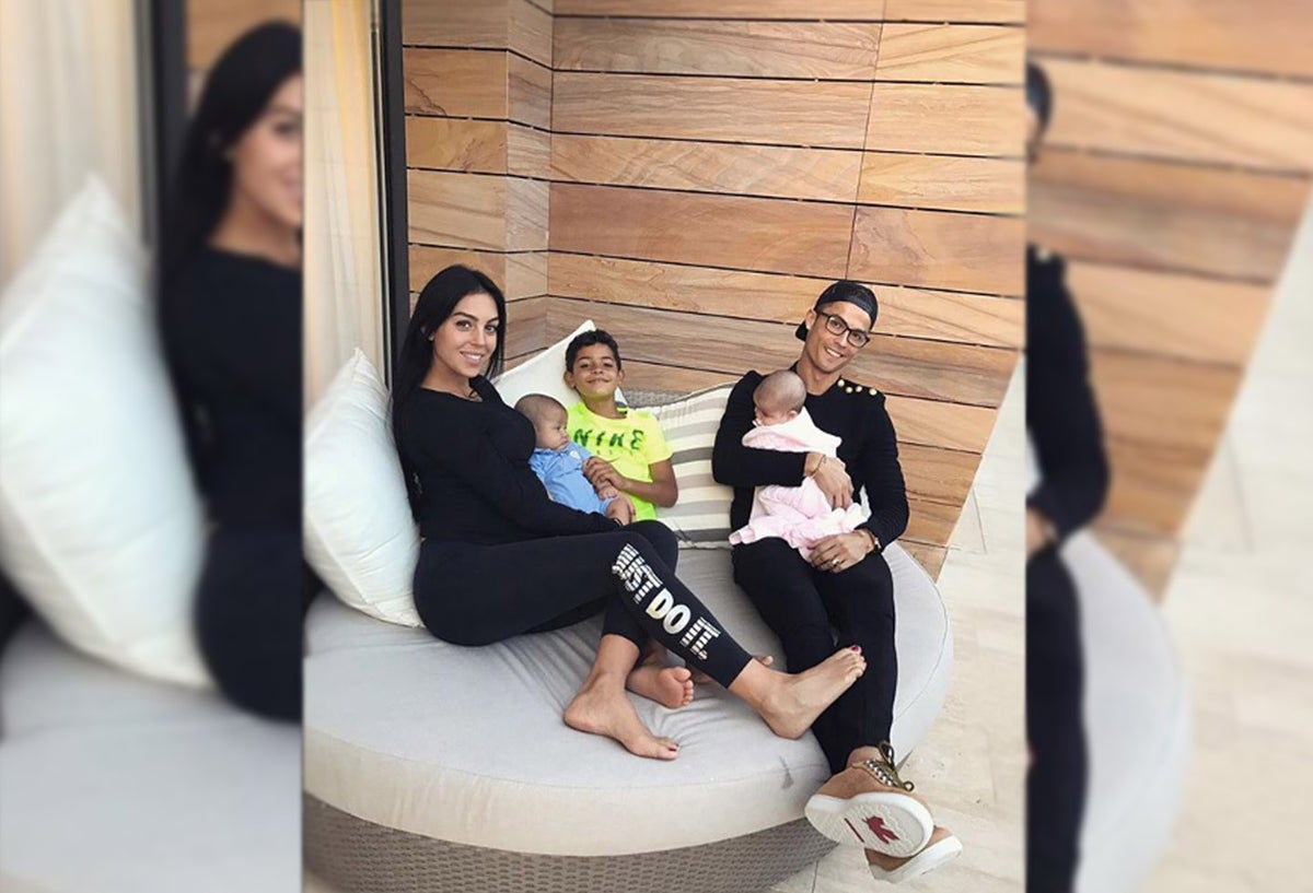 2.Cristiano compartió una fotografía junto a Georgina Rodríguez, su actual pareja. En las piernas lleva cargado a uno de sus bebés.