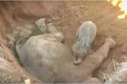 Finalmente, los pobladores lograron sacar al pequeño paquidermo para poder enterrar el cadáver; también se anunció una investigación contra la empresa contratista responsable de este hecho.