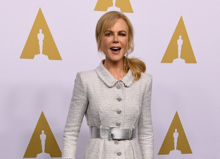 En el célebre almuerzo de los nominados a los premios Óscar, -ella en la categoría de mejor actriz secundaria por 'Lion'-, asistió con un traje gris de Channel y un cinturón plateado por debajo del pecho, que remarcó aún más su notable transformación.