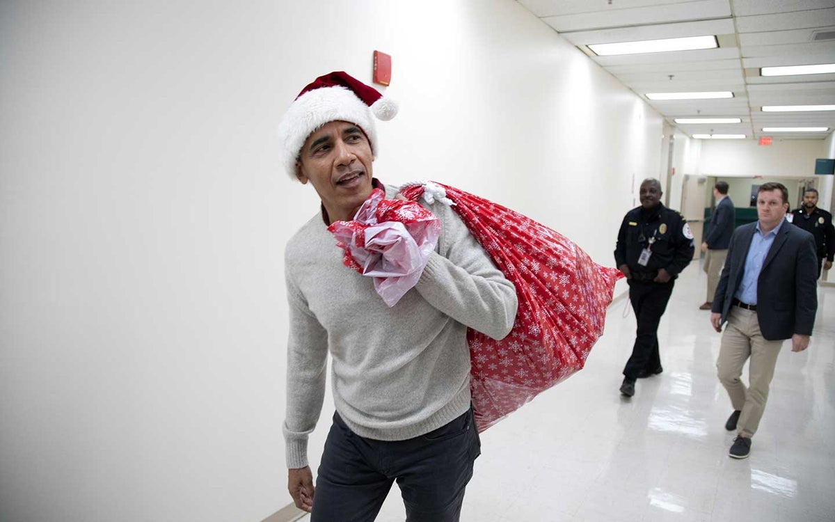 El expresidente de EE.UU. Barack Obama (2009-2017) entregó hoy regalos de Navidad a niños enfermos de un hospital de Washington, a los que visitó vestido con un gorro de Papa Noel y cargado con un saco lleno de paquetes.