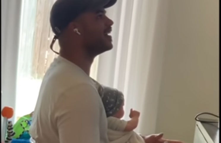 En ese momento, el padre voltea la cabeza para ver a su bebé y fue ahí cuando se percató de la broma del muñeco y saltó de la silla riéndose por lo sucedido.