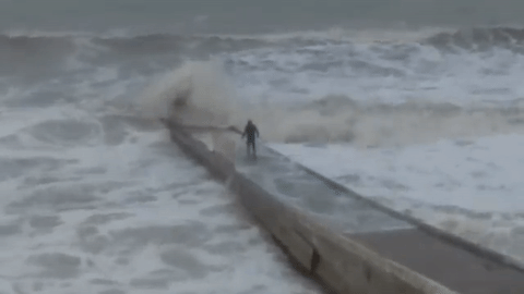 Hombre intentó desafiar un fuerte oleaje en Sochi, Rusia